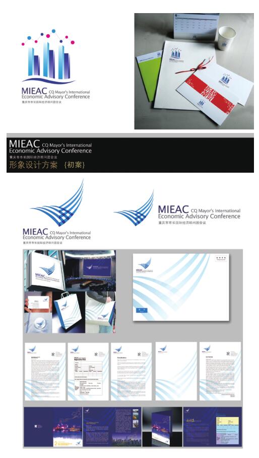 由于籌委會與設計方都對初稿不太滿意,需作人的改動,因此在正式稿 的設計環節中,首先就要攻克這一難題。其主要問題表現為,如果按“重慶 市市長經濟國際顧問團會議”的英語“Chongqing Mayor’ s International Economic Advisory Connci 1 ”的每一個單詞的f個字母組合起來的 “CMIEAC”,識別起來字母太多非常閑難,更不便于記憶。籌委會、相關部 門以及設計通過近一個月的反復討論,征求各方意見后達成共識,即減 去“CMTEAC”中的“E”和“C”,使之變成“CMIA”。第一是字母只有四個 字,便于識別,第二是這樣的組合可以構成一個單詞發音“瑟密亞”便于記 憶與傳播。這樣,在2006年5月標志與基礎系統得以通過。