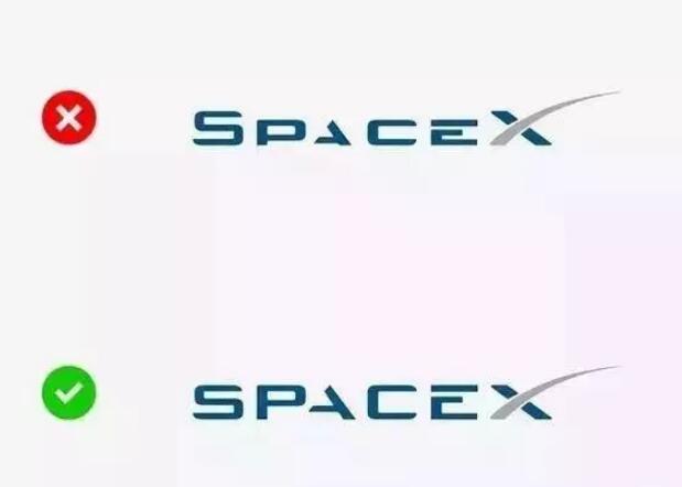 看起來有一致性,是一個好看logo的重要特征。如果你的logo只使用大寫字母,那何不讓所有字母都一樣高呢?下面這個Space X的例子,哪個版本看起來更吸引人?